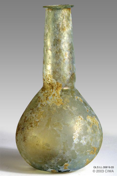 The earliest shape to be blown, the bulbous bottle with a tubular neck, was made throughout the Roman empire