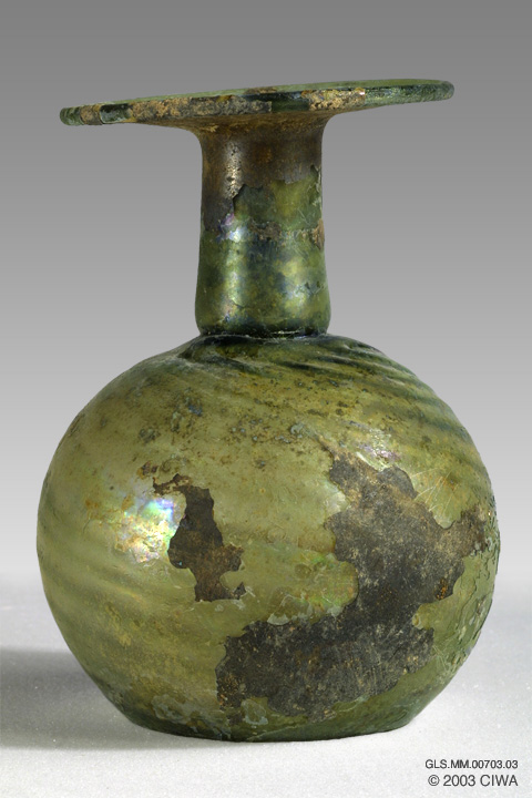 Iridescent sprinkler flask, Syria, 250-320 AD