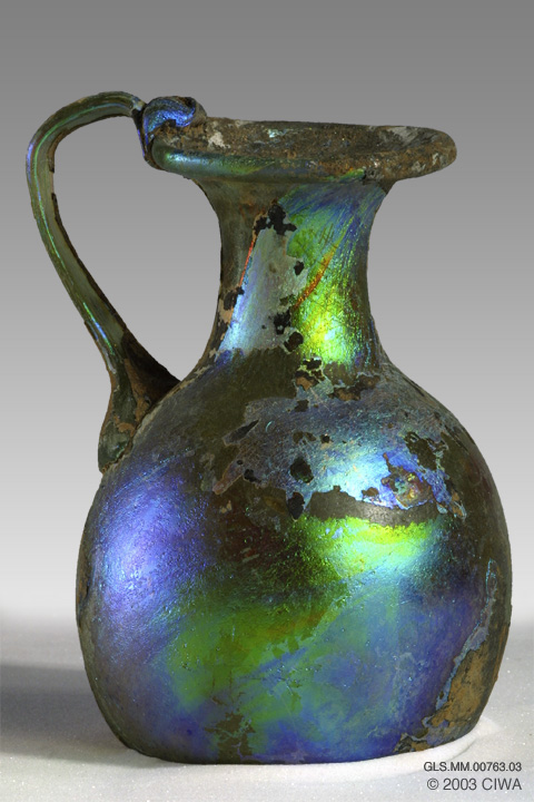 Iridescent glass oinochoe, 20 BC-100 AD