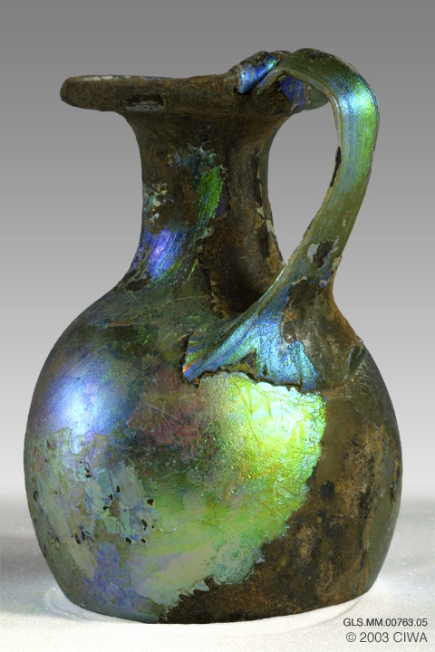 Iridescent olpe, Roman, 100-300 AD