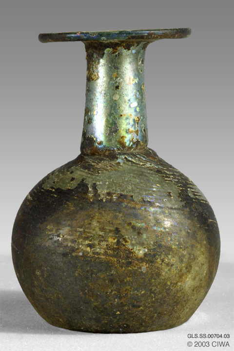 Iridescent sprinkler flask, Syria, 250-320 AD