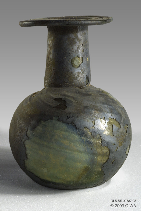 Iridescent sprinkler flask, Syria, 250-320 AD
