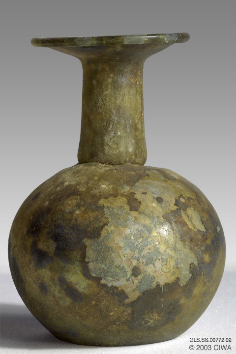 Production continued throughout the fourth century and perhaps into the fifth century. It has not been established when the sprinkler became obsolete. Syrian glassworkers made a large variety of vessels into sprinklers, simply by squeezing the neck with jacks and bushing the body up against the cut-in to create the diaphragm. Jars, tubes, amphorisks, and head-shaped flasks were occasionally finished as sprinklers (Stern 2001:152).