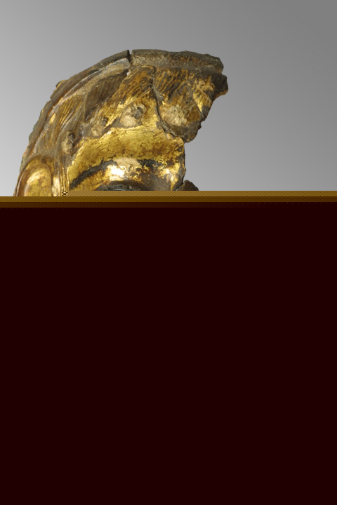 It was made with several layers of linen glued together and shaped in a mold. The resulting shell was usually coated on one side with gesso (a mixture of glue and whiting plaster). This smooth medium was well suited to detailed painting and gold leafing.