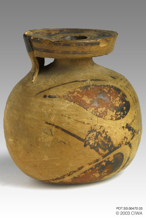 These perfume vessels offer a narrow neck and a wide lip which could be used to spread the fragrant oils on the skin. They are typical of Corinthian ceramics (Spiteris 1965).