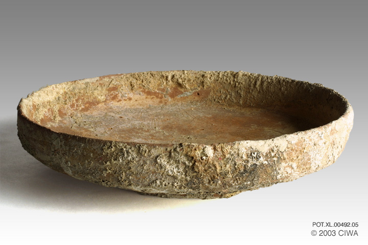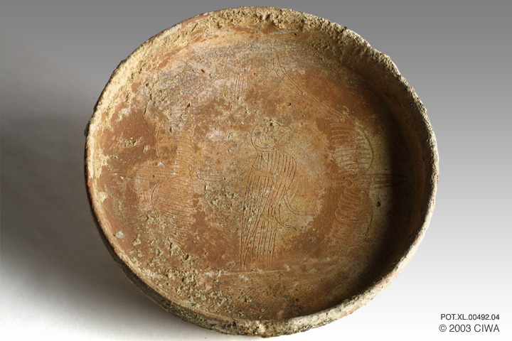 Large terracotta dish engraved with birds. Crete, circa 1400 BC.