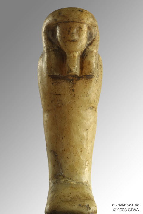 Larger mummiform figures carved in wood or stone and also bearing personal names have occurred in burials from the Twelfth Dynasty onwards at Abydos, Lisht and Hawara